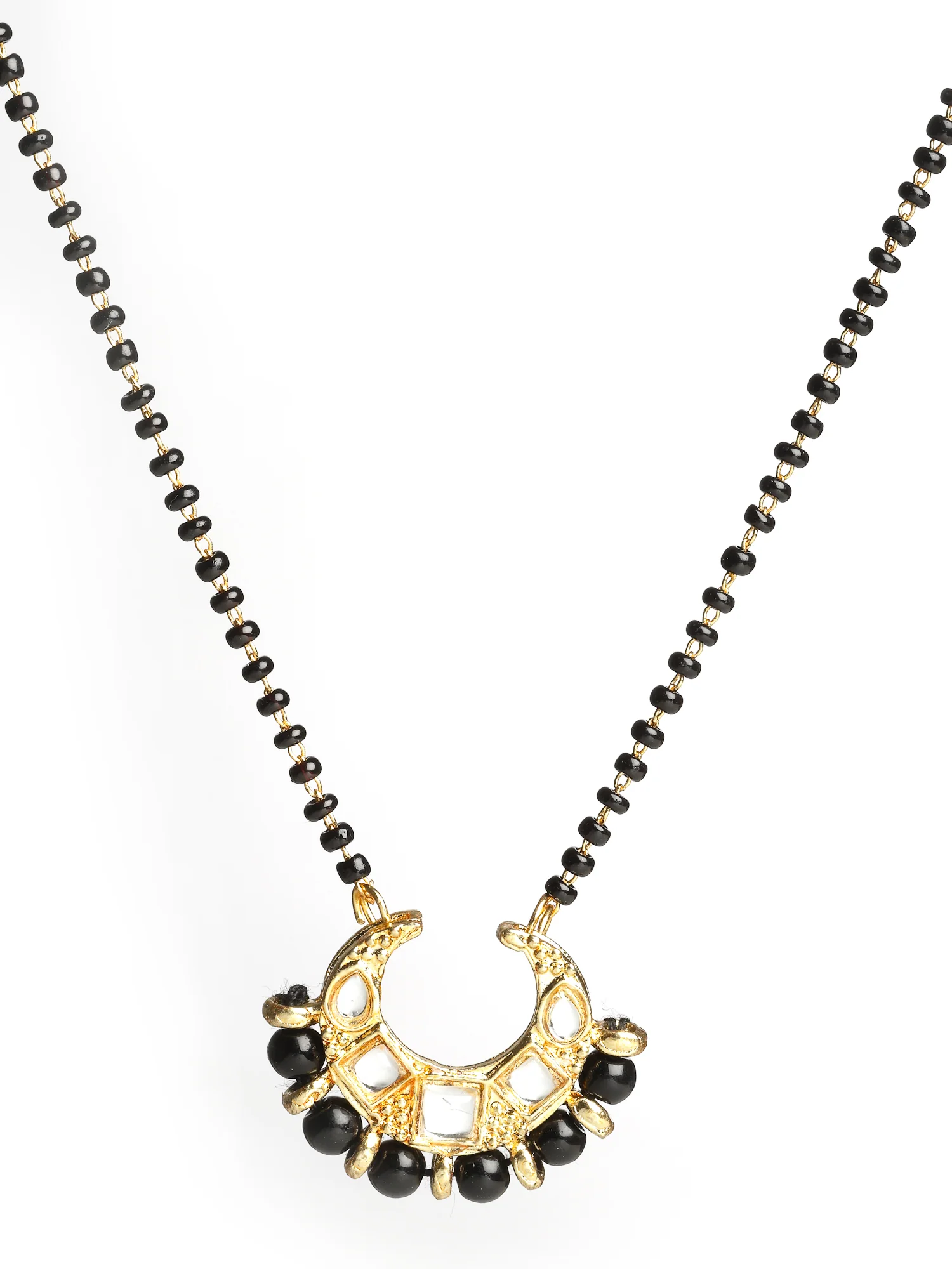 - Karatcart Gold Plated Black Beads Studded Kundan Mangalsutra for Women. It is made with high-quality Kundan Stones which makes them very skin-friendly. Perfect for Weddings, Parties, Festivals, and Traditional Occasions.