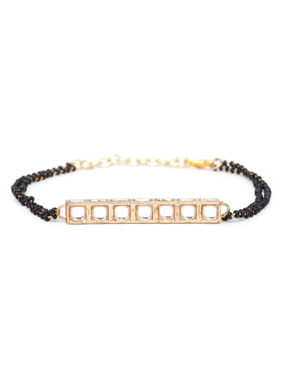 Women Gold-Plated Black Beaded & Kundan Studded Mangalsutra Bracelet