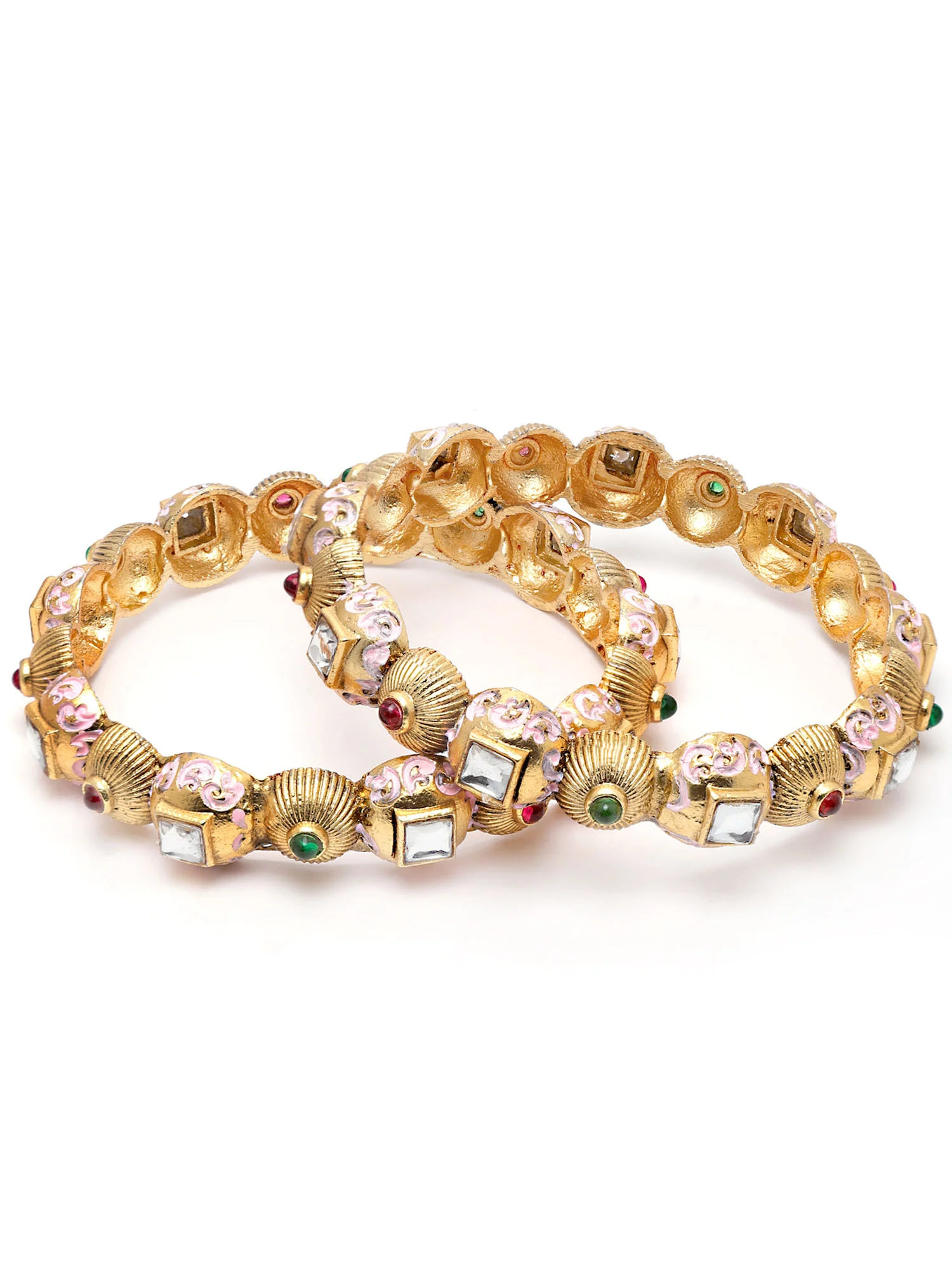 -70%Karatcart Pink Meena Gold Plated Bangle Set for Women—