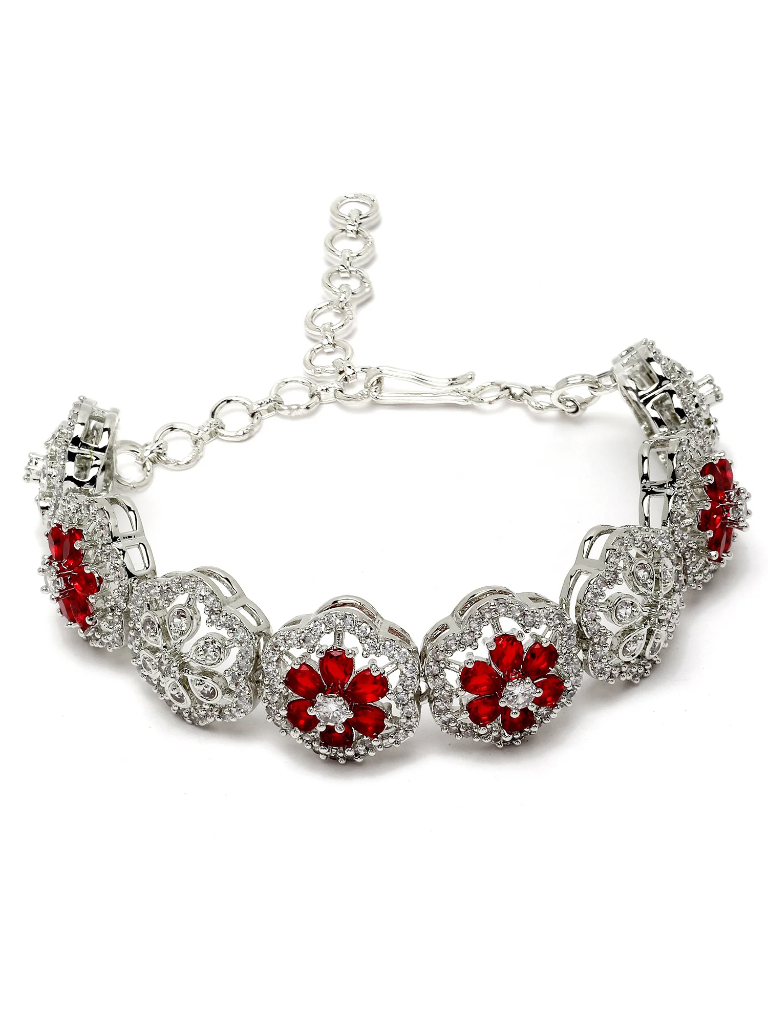Karatcart Silver Tone Red Cubic Zirconia Studded Bracelet for Women