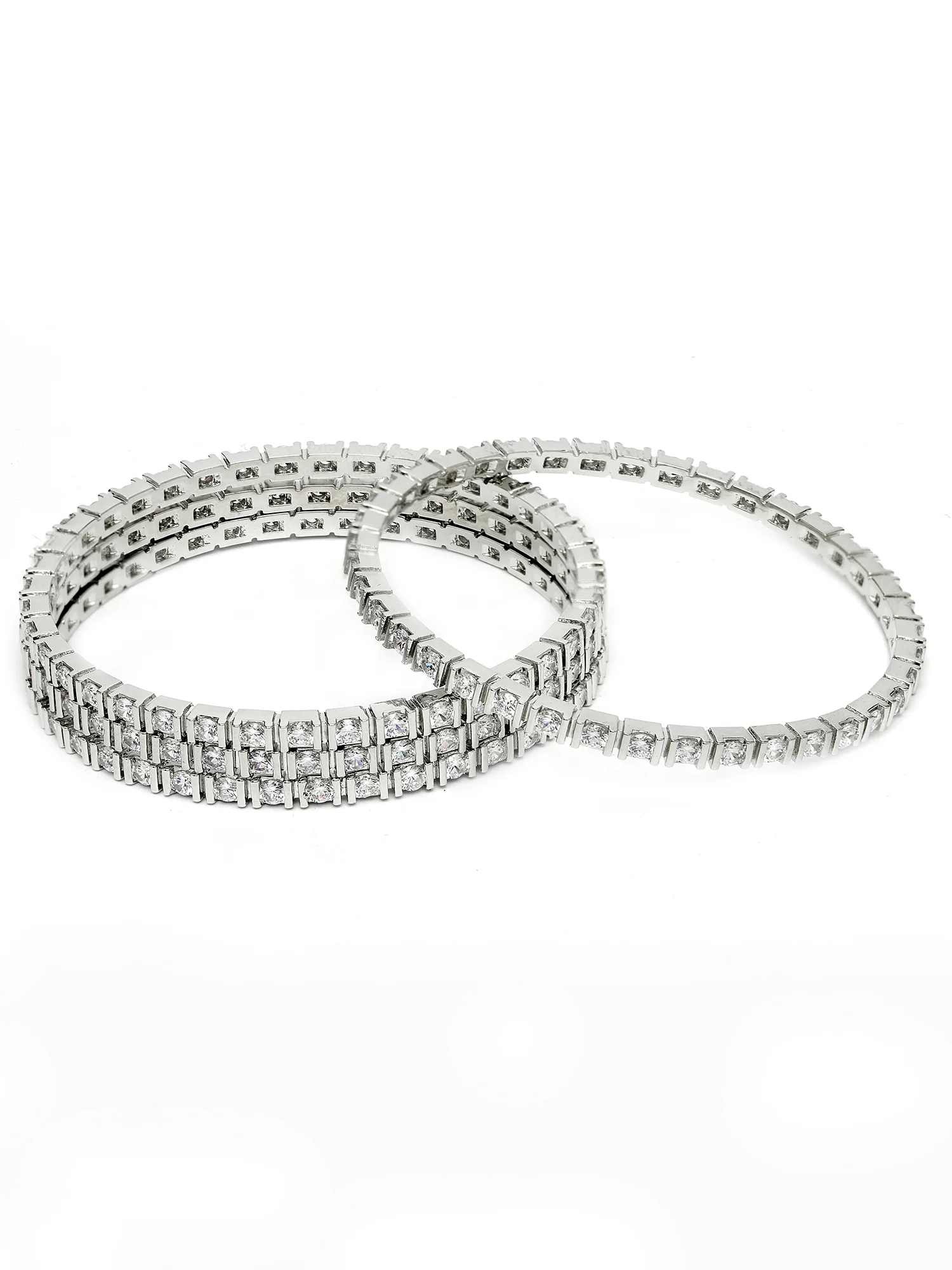 - Karatcart Silver Plated Set of 4 Round American Diamond Studded Bangles for Women. Our products are designed with high-quality material and these products are enhanced with plating that are skin-friendly & with love to reach your heart.