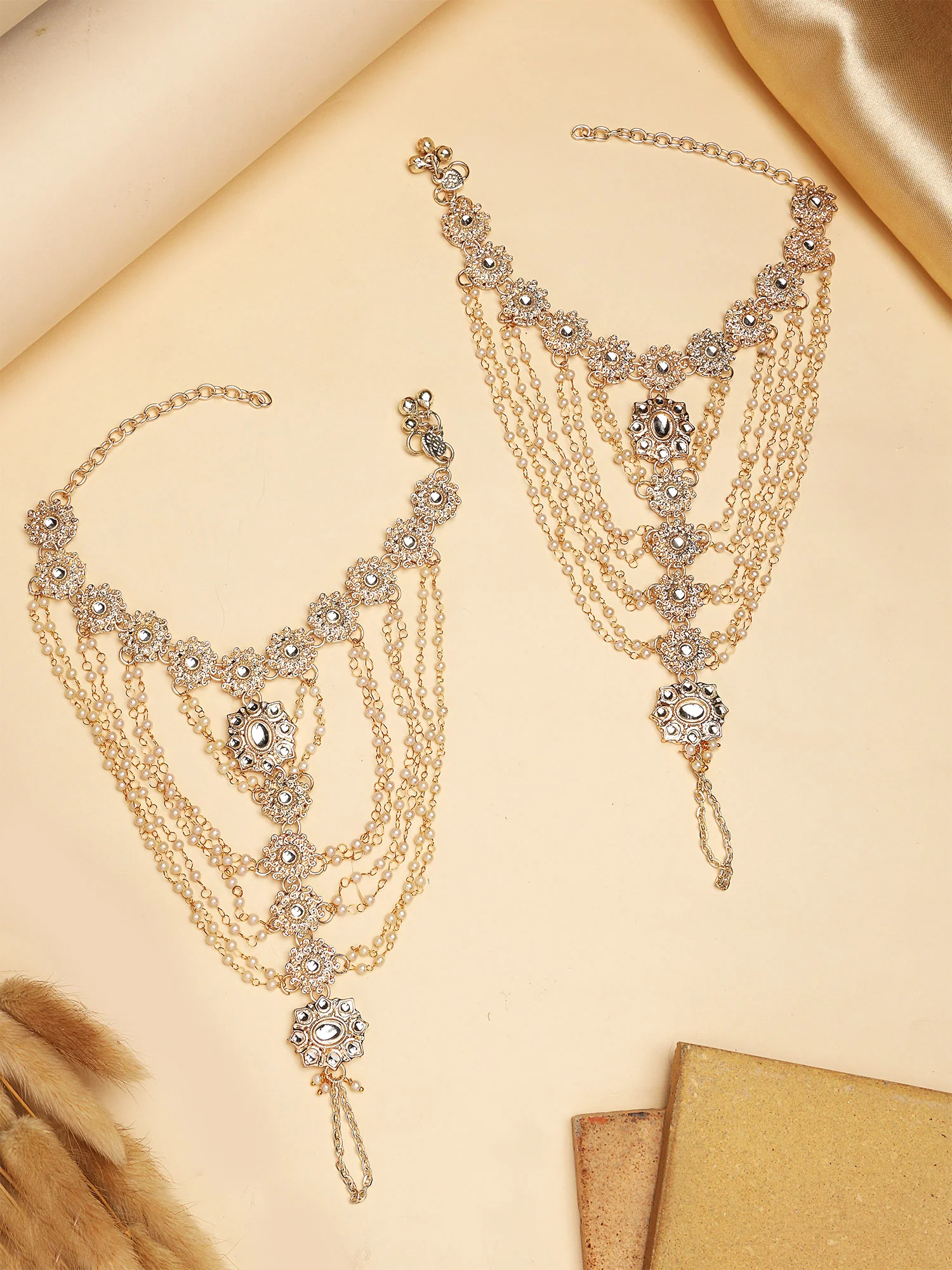 Karatcart Gold-Plated Bridal Anklet with Pearl Drapes and Floral Detailing