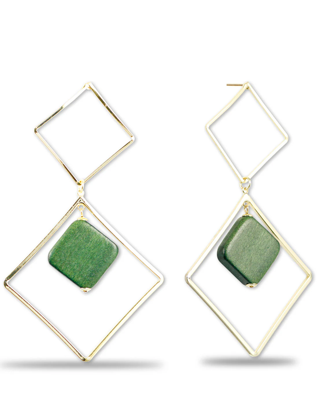 - Gold Metal Mate Green Geometrical Light Weight Earrings