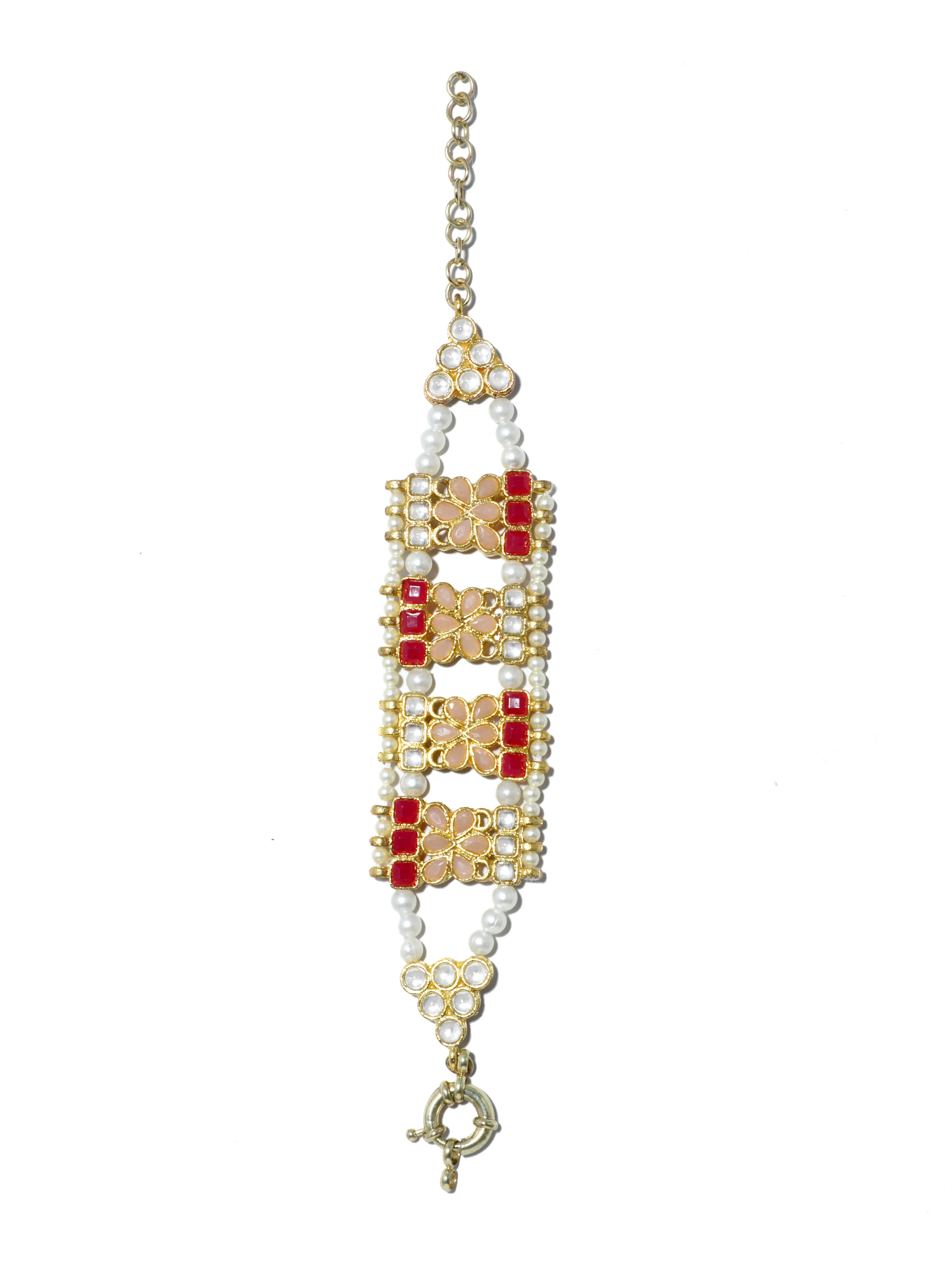 - Dazzling Peach and Pink Kundan Studded Handcrafted Bracelet for Women's. It's Five Layer Micro Gold Plated and Embellished with Kundan for High Durability. Intricate high polish creates glamorous reflections and adds a luxurious look. Perfect for Weddings, Festivals, Traditional Occasions. Best when paired with any Indian outfit.