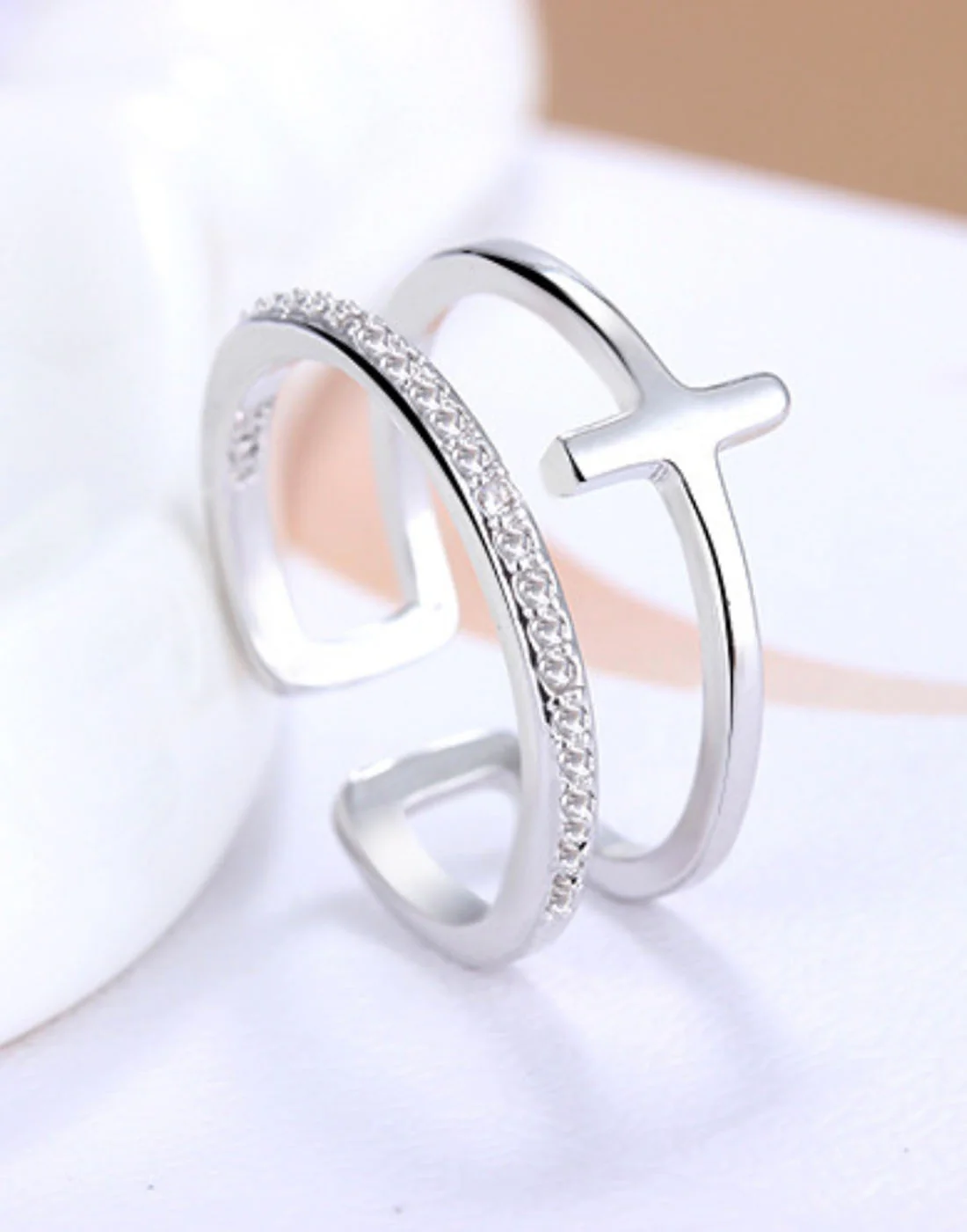 Platinum Plated Elegant Austrian Crystal Adjustable Ring