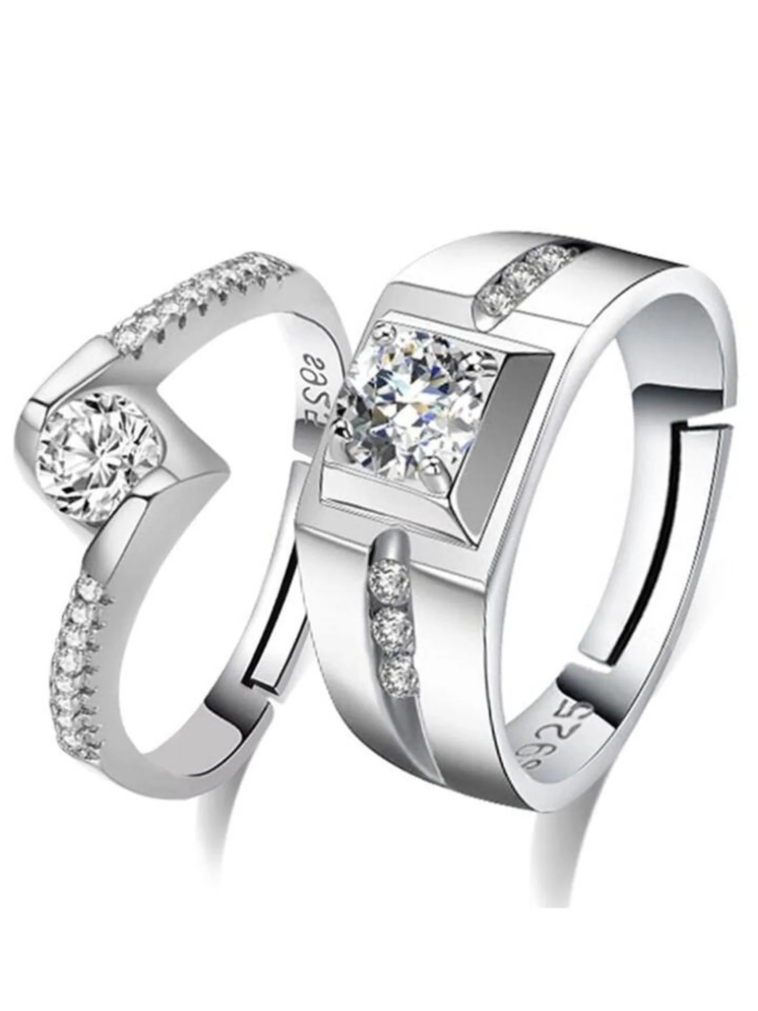 Platinum Plated Elegant Couple Adjustable Solitaire Rings